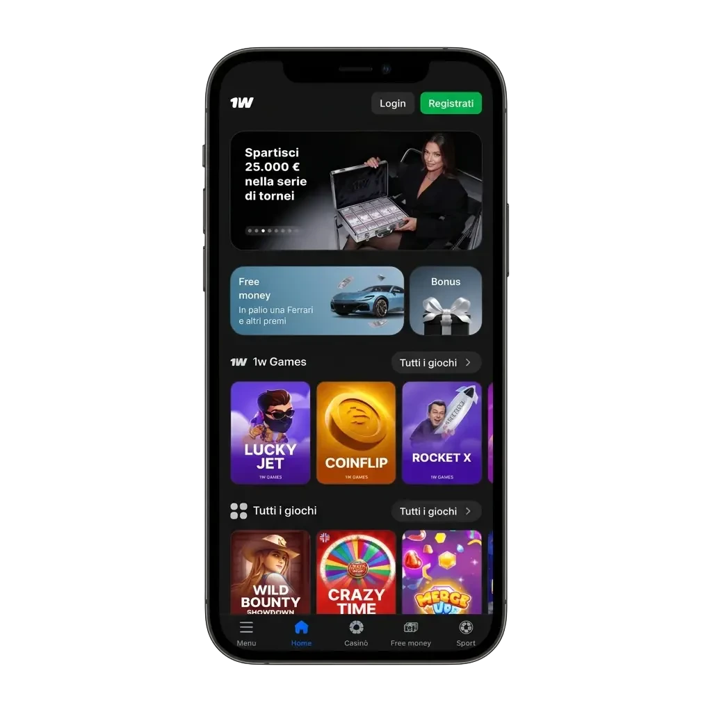 L’app 1w è la soluzione mobile per chi vuole scommettere e giocare al casinò direttamente dal proprio smartphone. Disponibile per Android e iOS, offre accesso completo a tutti i mercati sportivi e ai giochi da casinò online in qualsiasi momento. Registrati oggi, deposita a partire da 10 USD₮ e ottieni un bonus di benvenuto del +130% sul primo deposito.